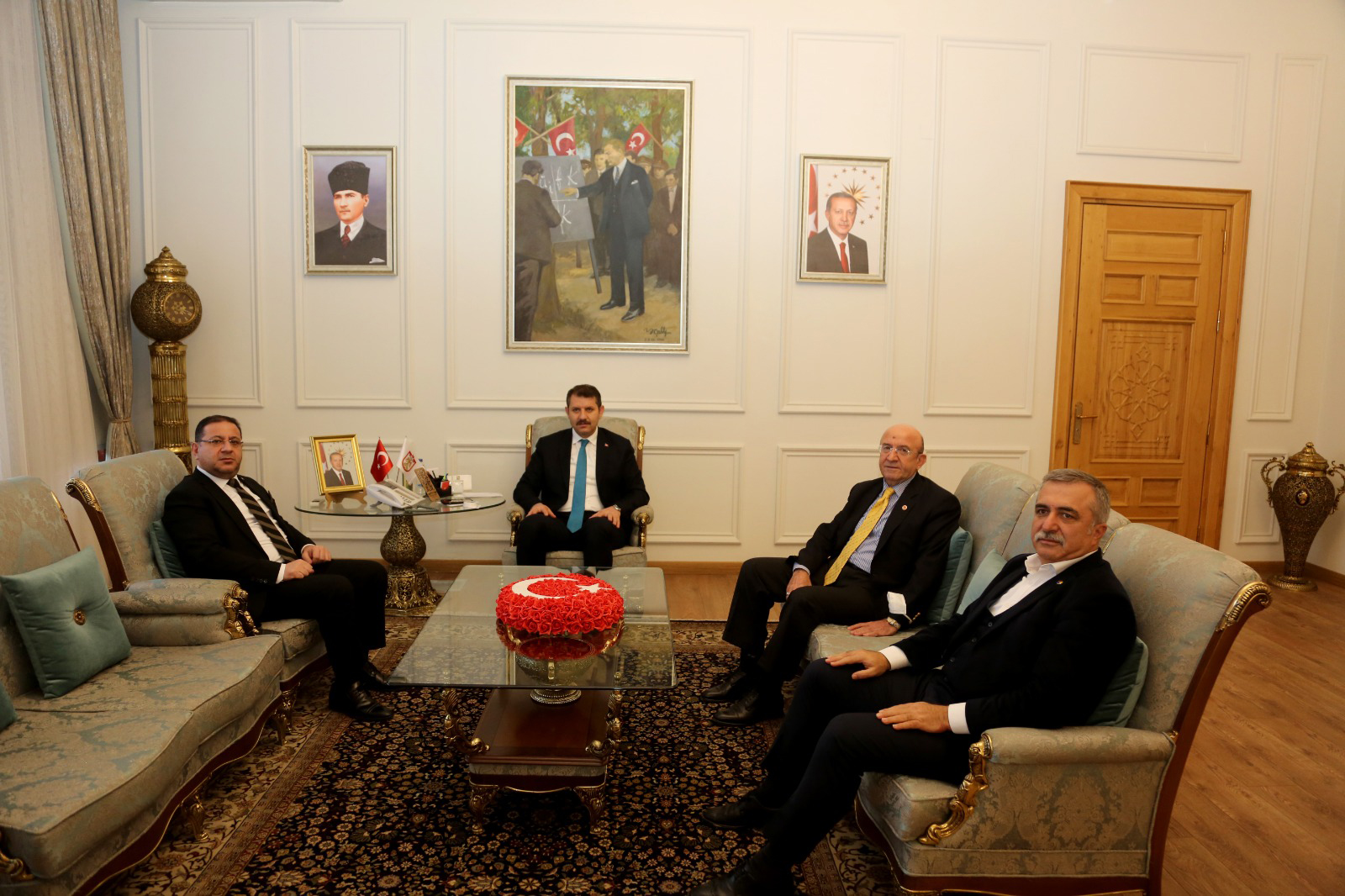 Sivas Valisi Sn. Salih AYHAN, Ticaret ve Sanayi Odası Başkanı Sn. Mustafa EKEN ile Valilik Makamında bir araya gelinmiş ve ziyaret detayları hakkında değerlendirmelerde bulunulmuştur.
